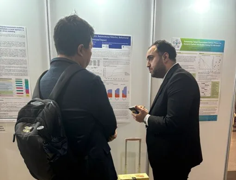 아메드 박사과정은 자율주행차의 IAM 도입 연구를 주제로 포스터를 발표하며, 교통 부문의 탄소 감축 가능성을 소개하였다.