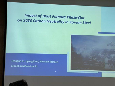 Jeongho Jo (Master’s graduate) delivered a presentation on Korea’s carbon neutrality in the steel industry, highlighting the implications of phasing out blast furnaces on achieving the 2050 carbon neutrality target.